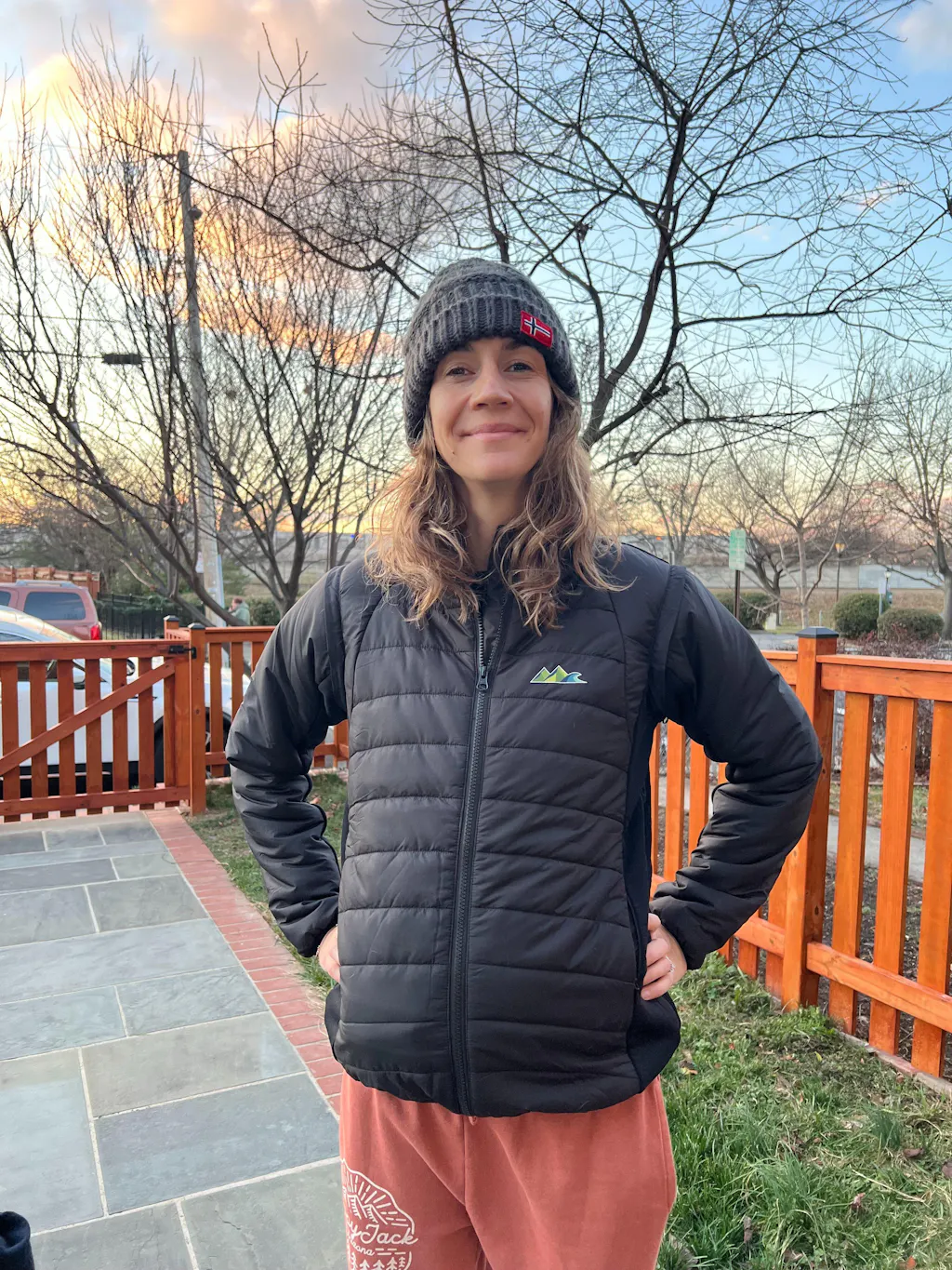 Right now, I’m mostly wearing the puffer alone, alternating between vest mode and jacket mode, depending on the day. Because I sized up, I haven’t needed to unzip the side panels yet — but I’m already seeing how useful that feature will be as my bump grows deeper into third trimester. Knowing I can just expand the jacket rather than replace it again is a huge win.